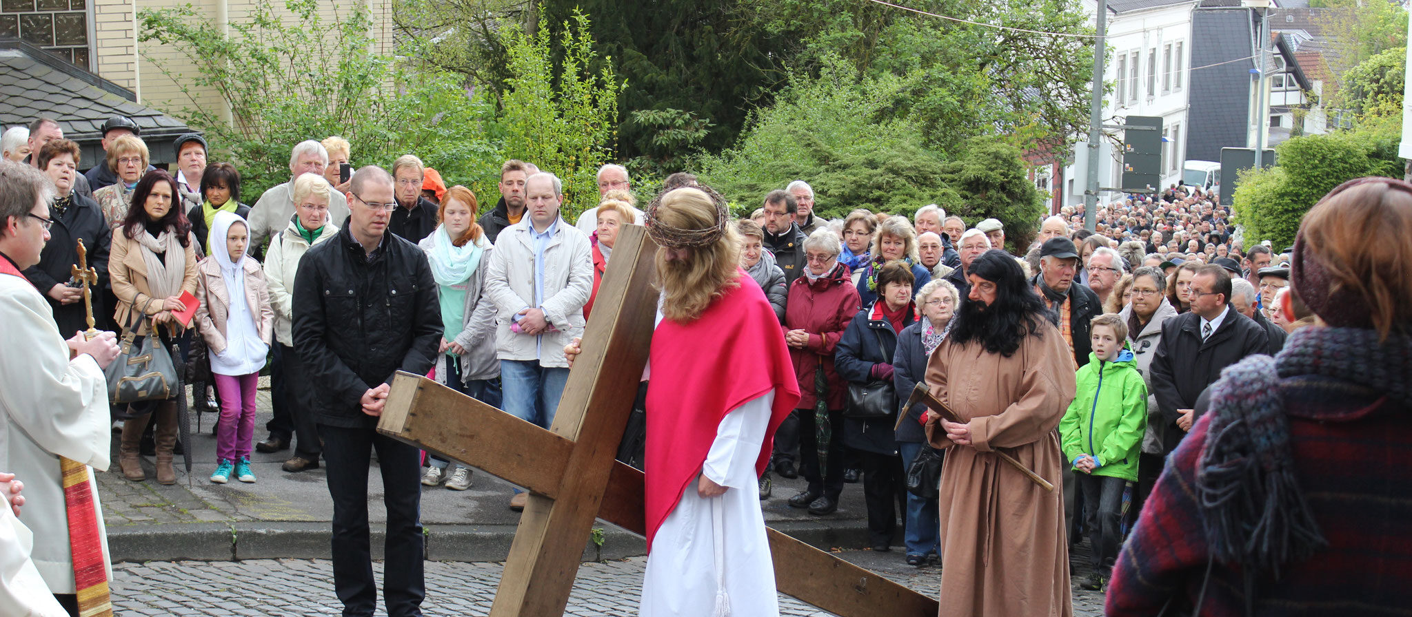 Wir treffen uns bereits um 12:30 Uhr im Hof der St. Vincenzkirche (neben der Kirche). Anschließend beginnt um 13:00 Uhr die Kreuztracht-Prozession. Gemeinsam gehen wir zu Fuß etwa eine Stunde zur Kapelle auf dem Rodenberg und danach wieder zurück.